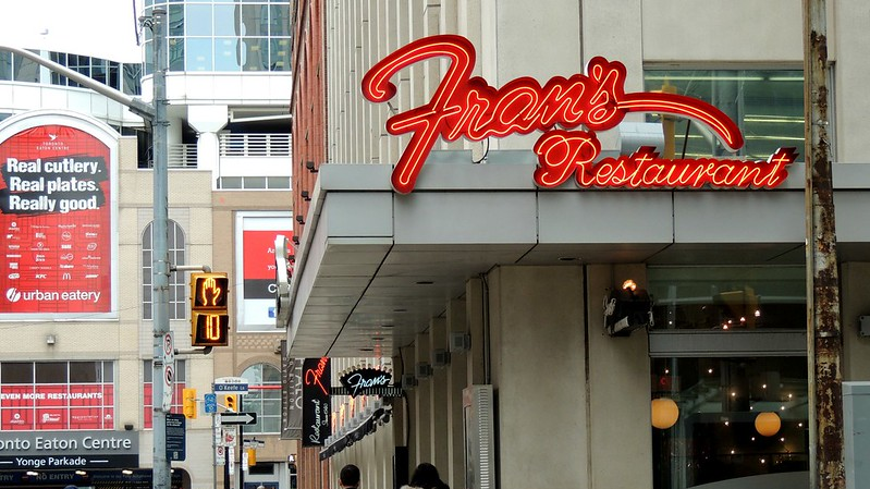 Fran’s Restaurant is only a short walk from Nathan Phillips Square. It’s ideal for grabbing a late-night burger, all-day breakfast, or a slice of pie between exhibits. The retro diner vibe, hearty comfort food, and quick service make it a go-to spot to refuel. It’s perfect for warming up before heading back out into the art-filled streets.