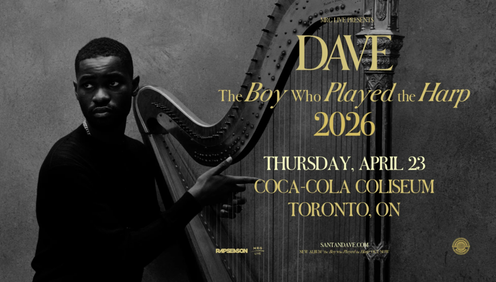 The British rapper Dave comes to Toronto on the North American leg of his first headline tour in almost four years, supporting The Boy Who Played the Harp. This album debuted at number one in the UK and continued a run that’s made him the first British rapper to debut three consecutive albums at the top of the charts. The album itself is built around Dave’s role as a producer and writer first, nine of the ten tracks produced or co-produced by him, with collaborators including James Blake, Tems, and Kano. Live, he’s known for interacting with crowds and creating a show that feels genuinely different from a typical hip-hop arena night.